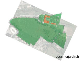 cette fois ci le verger est optimisé pour la production avec 260 arbres planter densément (6mx6m). dans ce cas, au bout de 15/20 ans, un arbre sur deux devront être coupés